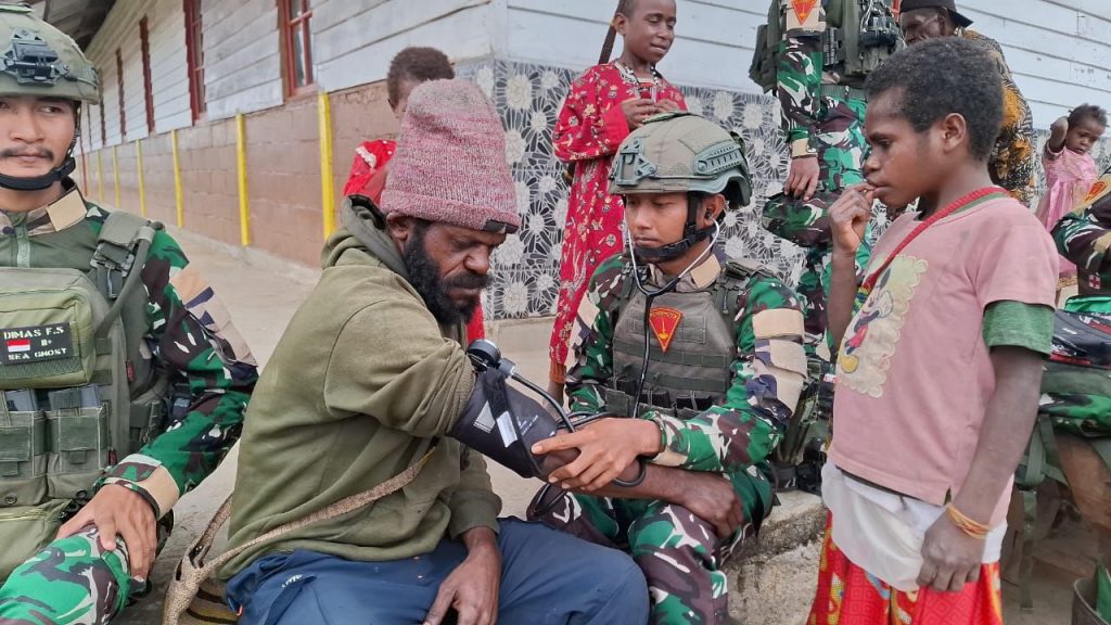 Tak berhenti di sana, Satgas Yonif 4 Marinir juga menghadirkan layanan kesehatan gratis bagi warga sekitar. Senyum dan rasa syukur masyarakat menjadi hadiah terindah bagi para prajurit yang senantiasa hadir bukan hanya sebagai penjaga keamanan, tetapi juga pelindung dan sahabat rakyat.