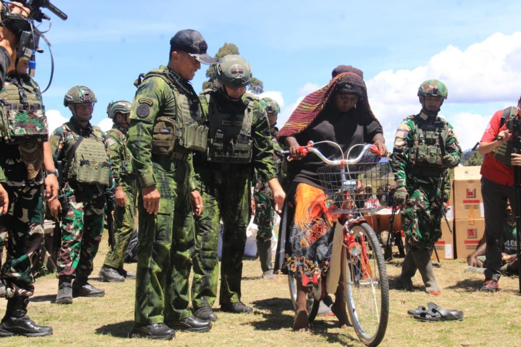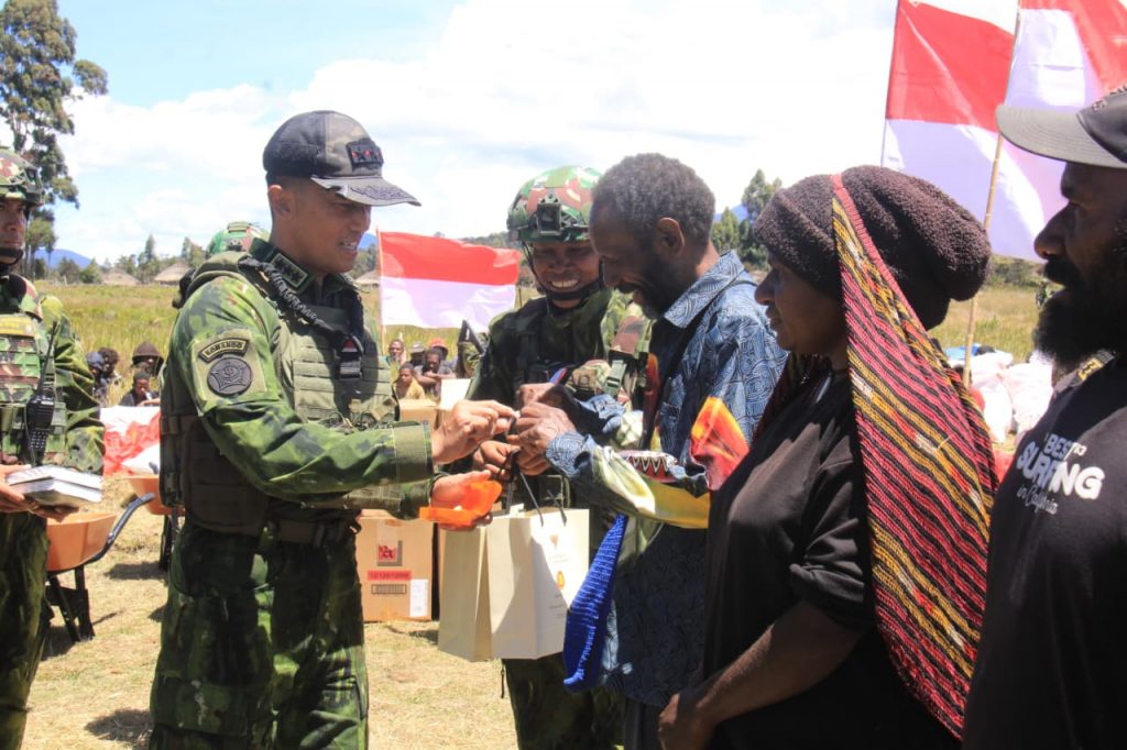 Dalam kesempatan tersebut, TNI menyalurkan berbagai bantuan, antara lain 1.300 paket susu dan 1.300 paket biskuit dari Presiden Republik Indonesia, 1.300 paket sembako, baju anak-anak, 5 sepeda, 10 gitar, 20 Alkitab, serta kacamata, senso, dan alat pertanian untuk membantu kebutuhan warga.