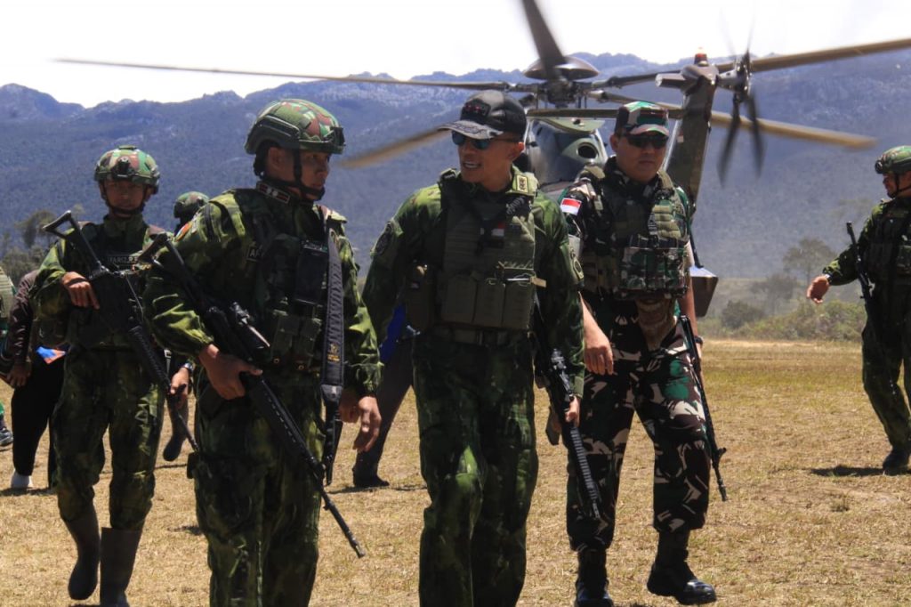 Usai kegiatan sosial, Letjen TNI Bambang Trisnohadi beserta rombongan melakukan peninjauan Pos Kotis Satgas Yonif 408/Sbh TK Kuyawage untuk melihat langsung kondisi prajurit dan sarana pendukung di lapangan.