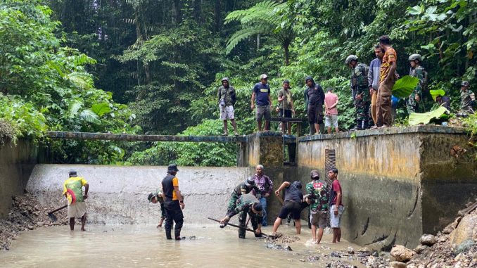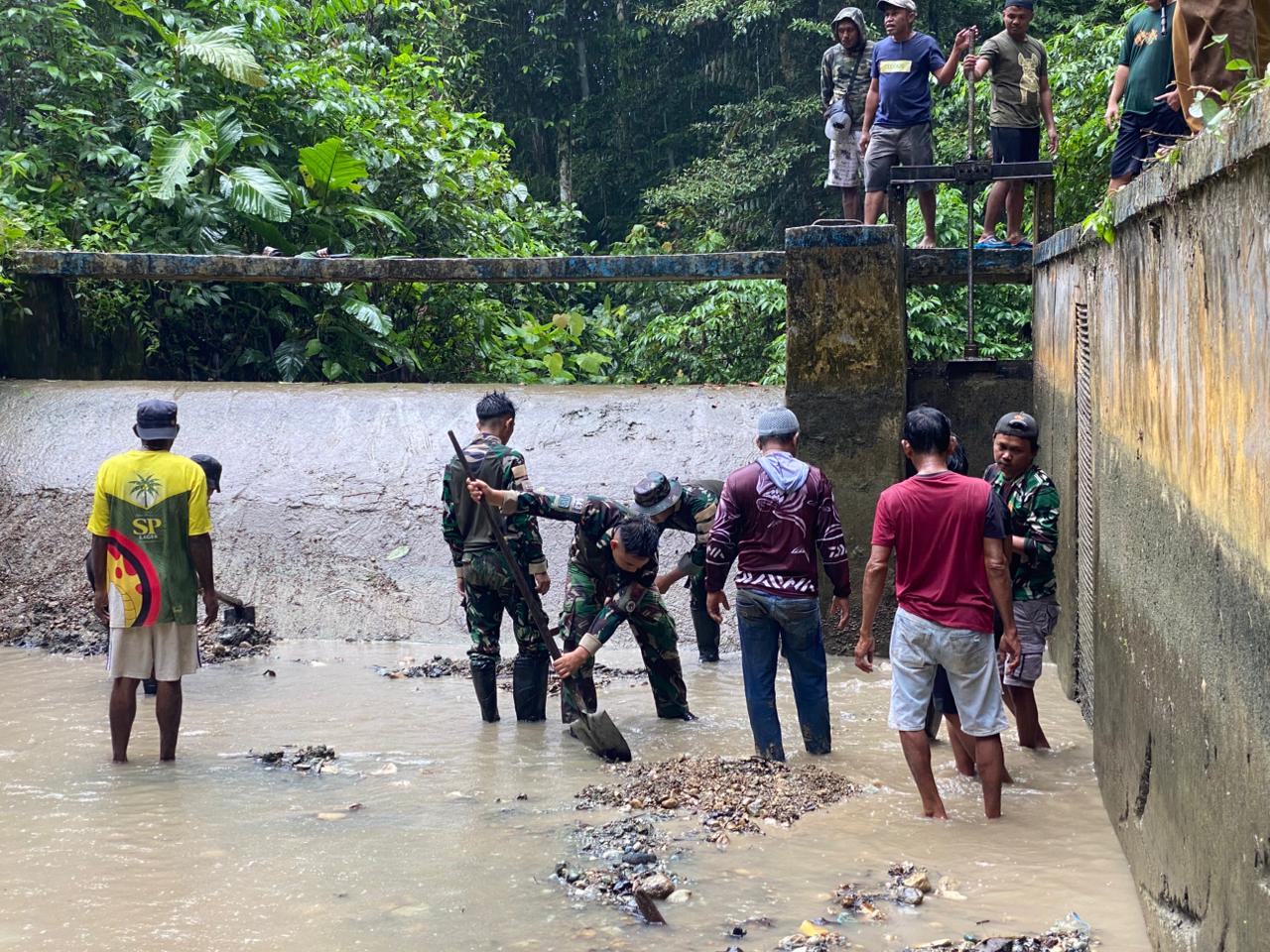 Kegiatan ini bukan sekadar kerja fisik, tetapi juga cerminan semangat pengabdian dan gotong royong yang mengalir di dada setiap prajurit TNI. Dengan cangkul dan semangat yang menyala, personel Satgas bersama warga membersihkan sampah dan sedimentasi yang menghambat aliran air, mengembalikan fungsi saluran agar kembali menghidupi lahan dan lingkungan sekitar.