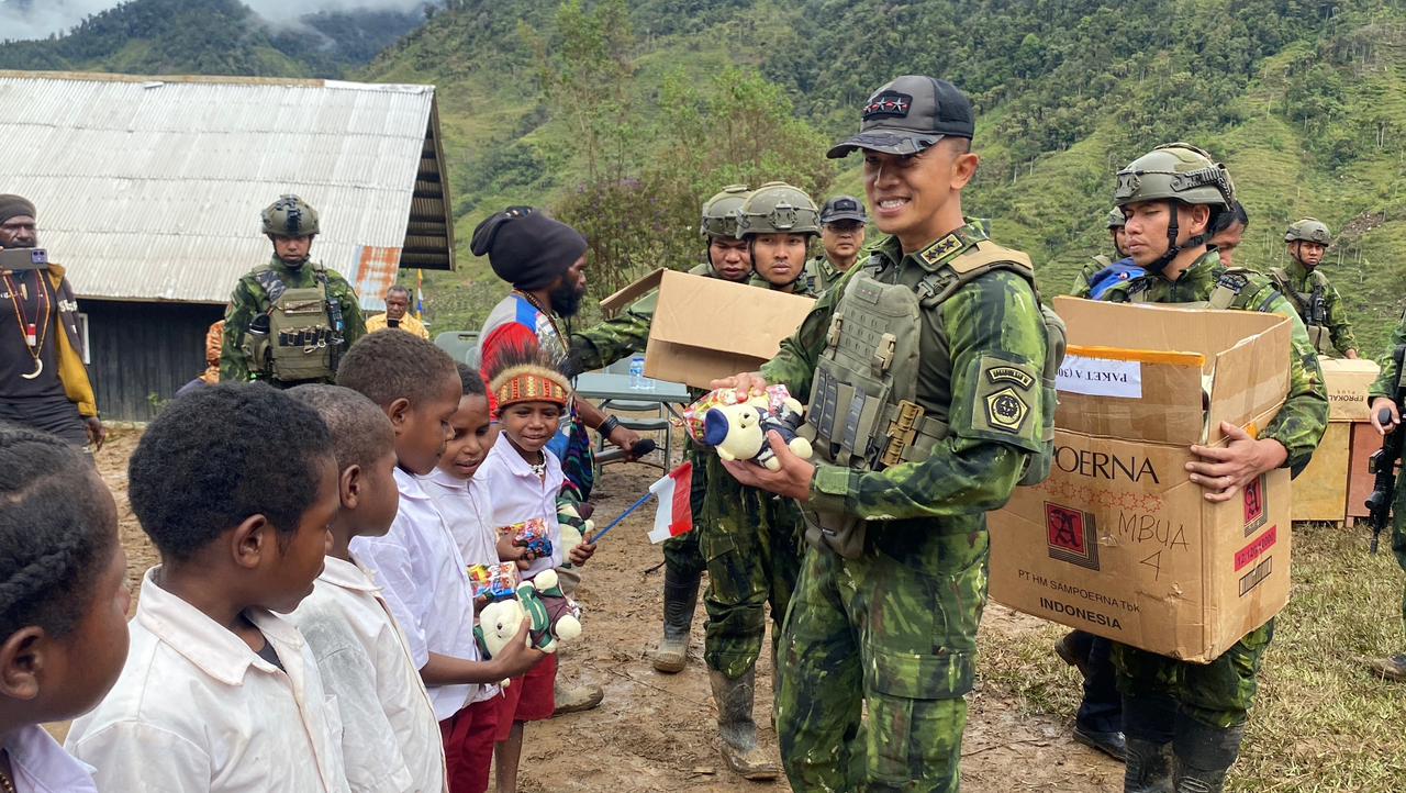 Keceriaan semakin terasa saat bingkisan dan boneka dibagikan kepada anak-anak, menghadirkan senyum polos yang menjadi harapan masa depan Papua.