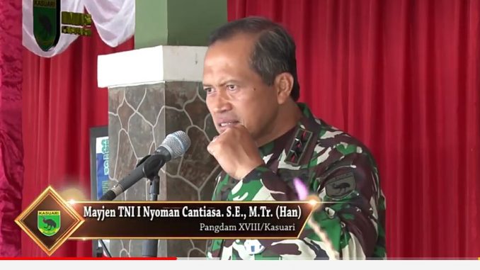 Teluk Bintuni, Penkogab3 – “Kasih adalah senjata Teritorial, kau harus mampu merebut hati masyarakat, jangan sempat kamu resisten terhadap masyarakat, jangan sempat masyarakat menolak kamu disitu, berarti kau tidak sesuai dengan kau punya visi”, demikian penekanan Pangdam XVIII/Kasuari I Nyoman Cantiasa, S.E., M.Tr. (Han) saat Kunjungna Kerja di Kodim 1806 Teluk Bintuni Papua Barat. Senin (19/4/2021).