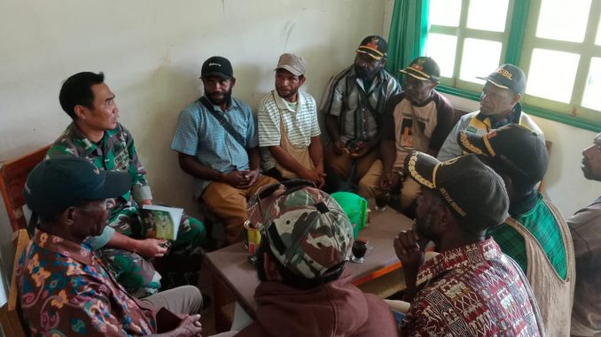 Pegubin, Penkogab3 – Babinsa Koramil 1715-04/Okbibab melaksanakan Komunikasi Sosial (Komsos) bersama 8 Kepala Kampung Distrik Okbibab, bertempat di Makoramil 1715-04/Okbibab Distrik Okbibab Kab. Pegunungan Bintang, Selasa (17/01/23).